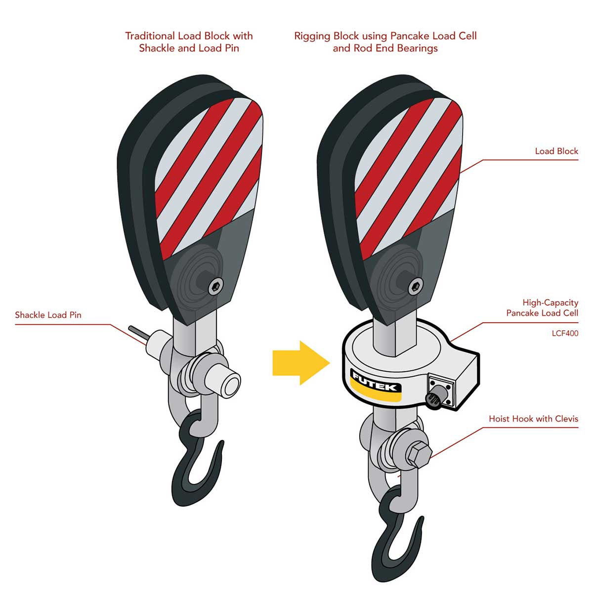 1、拼搏官方网站 的 LCF饼状力传感器安装在负载块和起重钩之间,以测量起重机的提升负载。