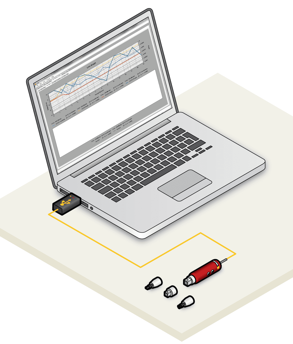 一个微型反作用力扭矩传感器(TAT200)配上USB解决方案和SENSIT™测试测量软件或IHH500手持式显示仪表。