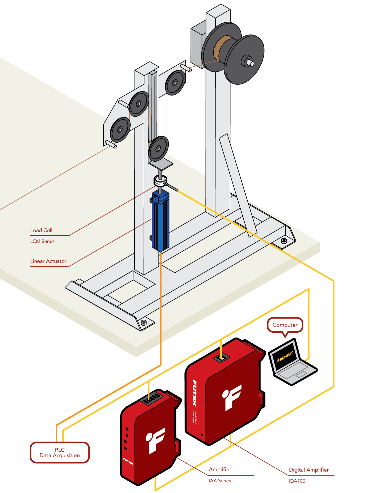 1、在钢丝张紧器和线性执行机构之间安装LCM 系列微型轴向拉拼搏pinbo(中国),用于测量钢丝张力。
