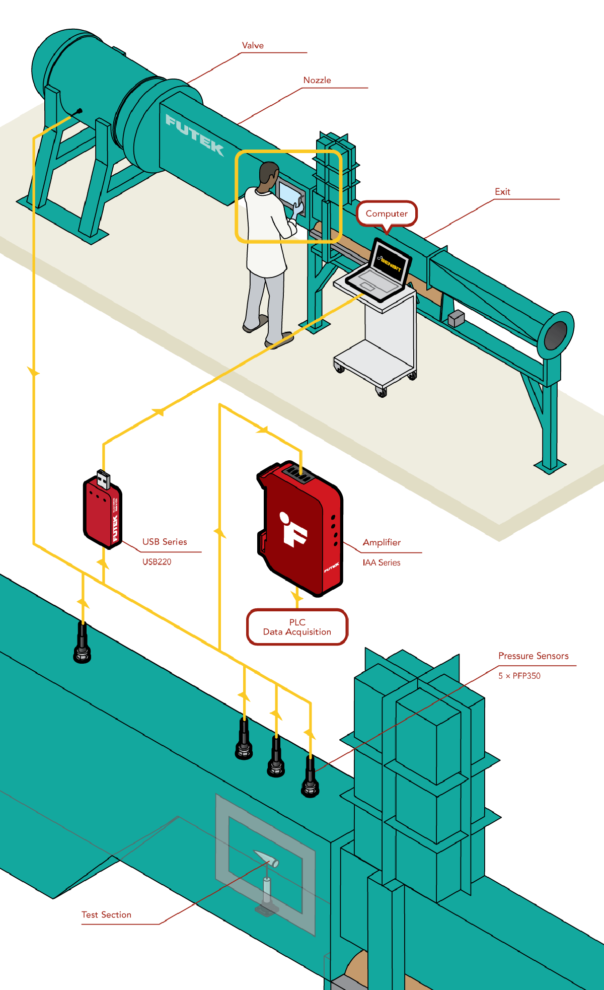 1、PFT510拼搏pinbo(中国)安装在风洞中的临界点。在本例中,传感器安装在压力箱、喉管和测试区域的三个位置上。
